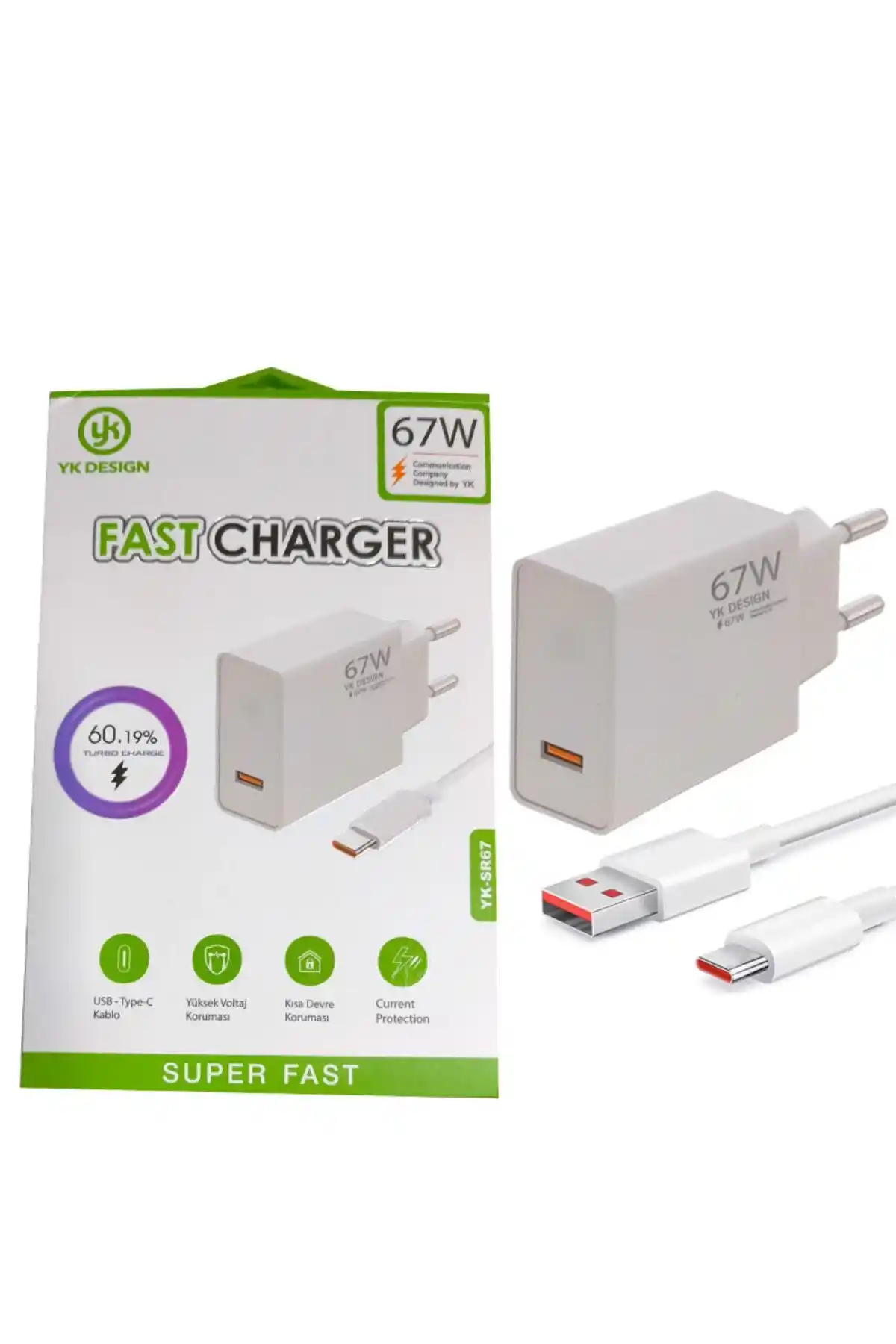 YK Design 67W hızlı şarj kısa devre ve yüksek voltaj korumalı Type C Şarj adaptörü ile pratik ve güvenli şarj deneyimi yaşayın.