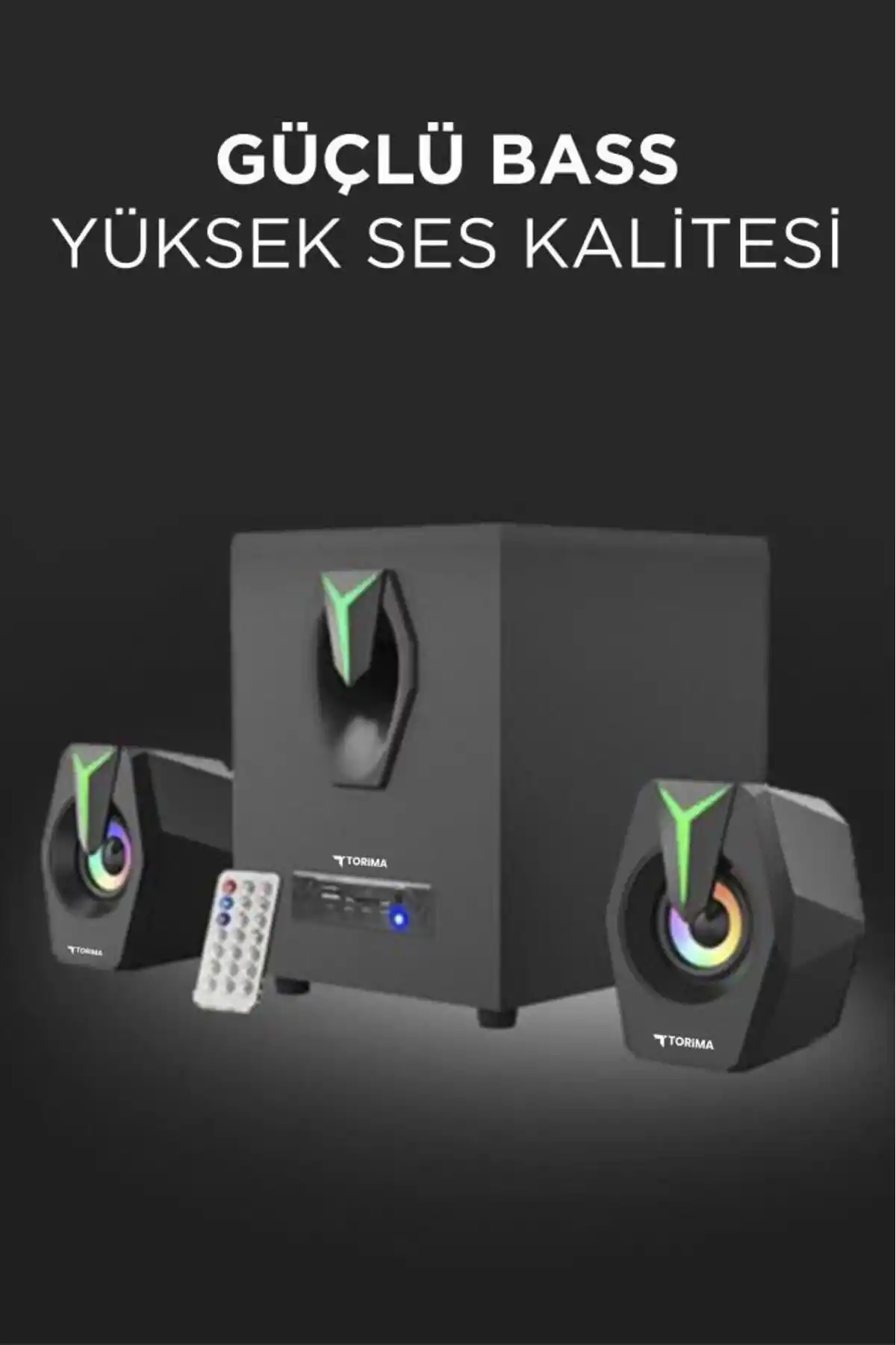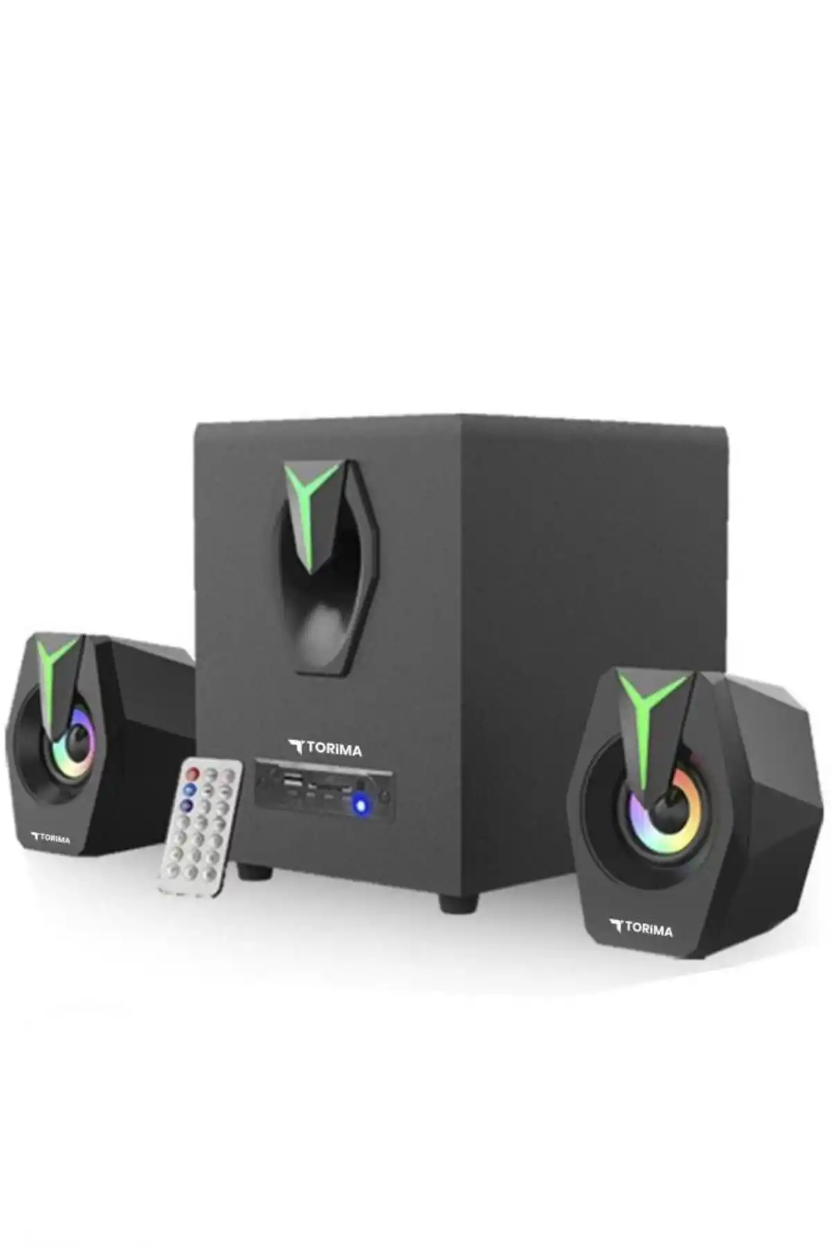 Torima D38 Siyah Bluetooth Hoparlör, benzersiz 2in1 Subwoofer özelliği ve RGB ışıkları ile bilgisayarınızı çevreleyen mükemmel ses deneyimini sunar.