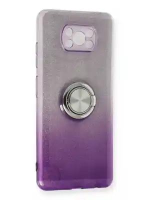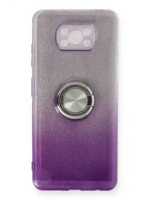 Xiaomi Phone X3 Kılıf Simli Ring Standlı Slim Silikon Kılıf - Mor